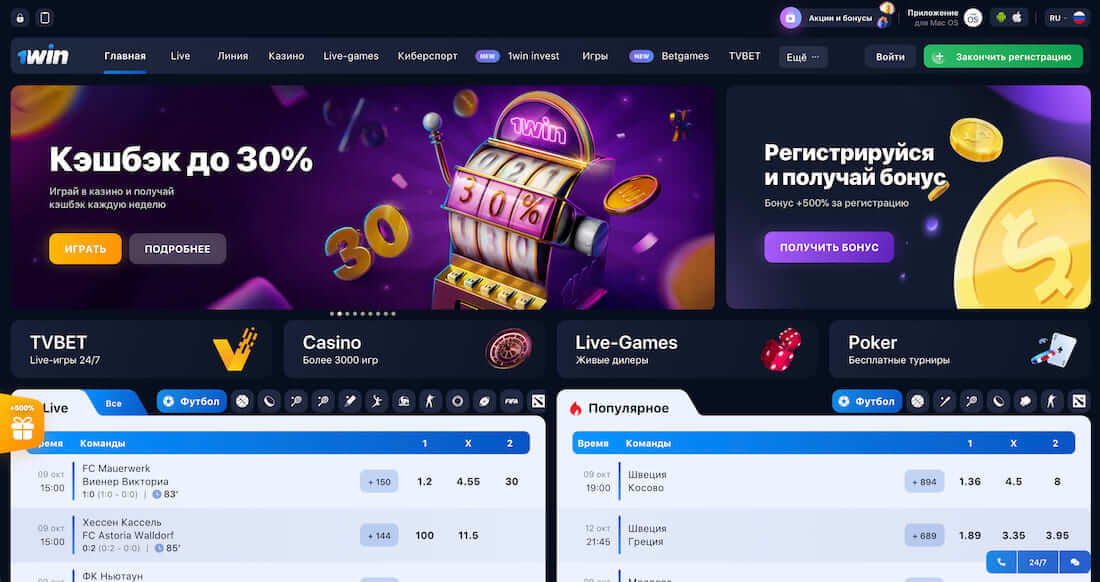 Помимо онлайн-казино, на платформе гости найдут ставки в букмекерской конторе, а для удобства пользователей предлагается простейшая навигация. Пройдя несложную процедуру регистрации в 1Win игроки не только становятся полноправными членами клуба с доступом ко всем преимуществам, но и получают щедрый приветственный бонус, который позволяет приступить к ставкам не тратя личные средства.